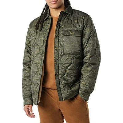 Amazon Essentials Men's Water Resistant Sherpa Lined Quilted Shirt Jacket, Green Camo, XS