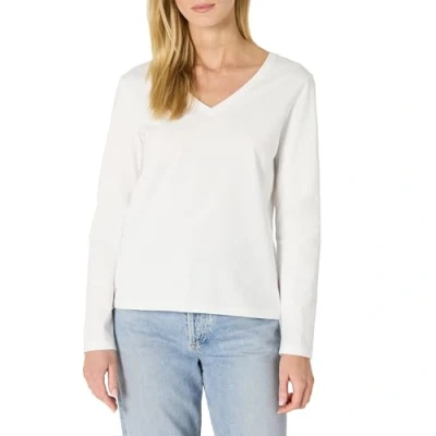 Amazon Essentials Women's 100% Cotton Regular Fit Long Sleeve V Neck T Shirt, White, XXS