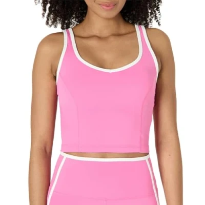 Amazon Essentials Women's Active FormFlex Buttery Soft Light Support Longline Padded Sports Bra with Contrast Trim, Flamingo Pink/White, L