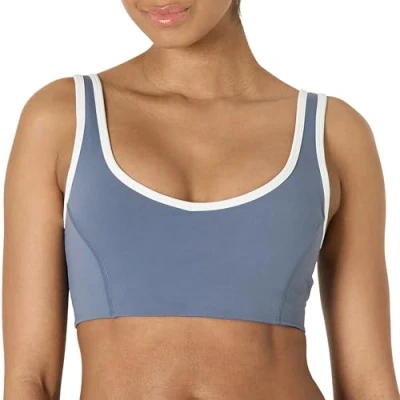 LIGHT SUPPORT FIT: Comfortable fit with light support for A-C cup size DESIGNED FOR YOGA: Made for low-impact workouts, such as yoga and pilates, or everyday athleisure – not designed for high-impact workouts. Also great for running errands, our clothing is made to work out, live in and lounge. The perfect sports bra to pair back with Amazon Essentials Active FormFlex Leggings FORMFLEX FABRIC: Soft as butter and smoothing, this fabric is designed to be moisture-wicking and breathable, keeping you cool and comfortable whether you’re working out, winding down or on the go. FormFlex fabric keeps you feeling confident, comfy and totally at ease all day long FEATURES: Removable cups and a flattering v-neck. Silhouette offers soft interior elastic under the bust for extra support and comfort. Contrast binding details