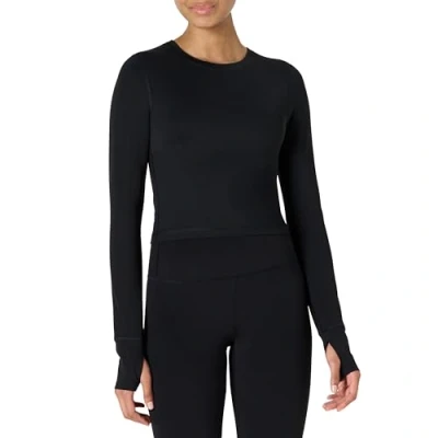 Amazon Essentials Women's Active FormFlex Buttery Soft Long Sleeve Slim Fit Crop Layering Workout Top, Black, L