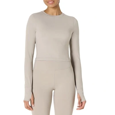 Amazon Essentials Women's Active FormFlex Buttery Soft Long Sleeve Slim Fit Crop Layering Workout Top, Taupe, L