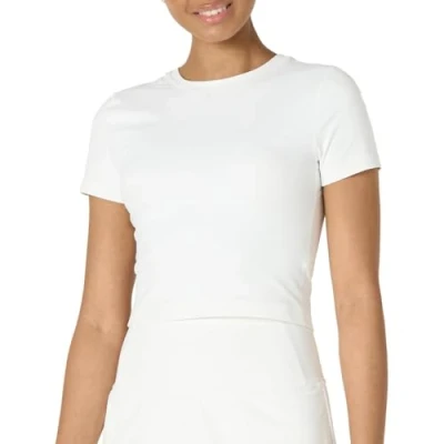 Amazon Essentials Women's Active FormFlex Buttery Soft Short Sleeve Slim Fit Crop Layering Workout Top, White, L