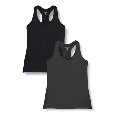 Amazon Essentials Women's Active Quick Dry Tech Stretch Racerback Tank Top (Available in Plus Size), Pack of 2, Black/Graphite Heather, S