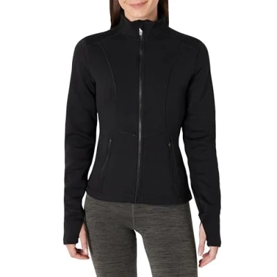 Amazon Essentials Women's Active Sweat Slim Fit Zip Through Jacket, Black, XL