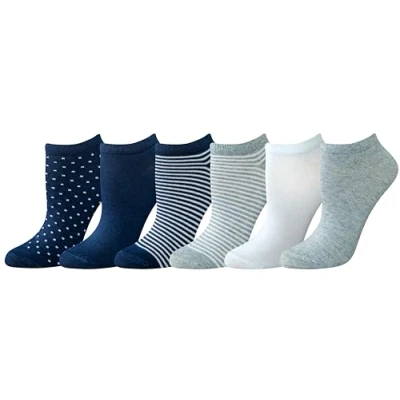 COMFORT AND FIT: These low-cut socks fit under the ankle and have a smooth toe construction that eliminates bulky seams. MATERIAL: Amazon Essentials socks are made from high-quality and durable materials. These socks are a cotton-poly blend with elastane for superior fit and shape retention. STYLE: Available in solids and patterns DETAILS: Sold 6 pairs per pack. DESIGN: These versatile socks are perfect for work, dress, casual, or everyday wear.