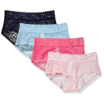 Amazon Essentials Women's Comfortable Lace Stretch Hipster Underwear, Pack of 4, Blue/Pink, 18