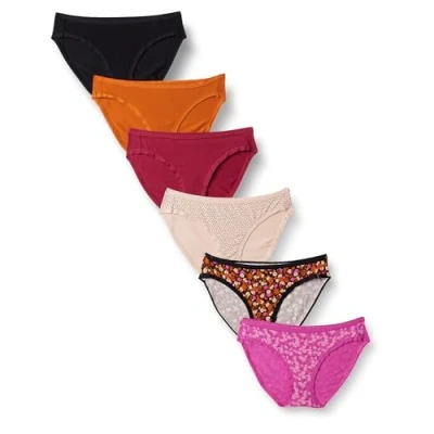 Amazon Essentials Women's Cotton Bikini Brief Underwear (Available in Plus Size), Pack of 6, Dots/Floral/Multicolour, 18
