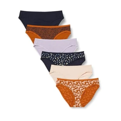 Amazon Essentials Women's Cotton Bikini Brief Underwear (Available in Plus Size), Pack of 6, Multicolour/Floral/Petal Print, 18