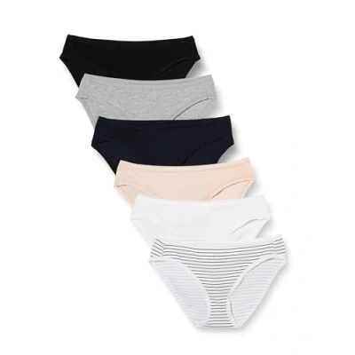 Amazon Essentials Women's Cotton Bikini Brief Underwear (Available in Plus Size), Pack of 6, Multicolour/Heather/Stripes, 14
