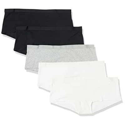 Amazon Essentials Women's Cotton Boyshort Knickers (Available in Plus Size), Pack of 5, Black/Grey Heather/White, 5XL