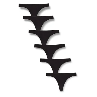 Amazon Essentials Women's Cotton Thong Knickers, Pack of 6, Black, 8