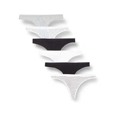 Amazon Essentials Women's Cotton Thong Knickers, Pack of 6, Dots/Heather/Multicolour/Stripes, 14