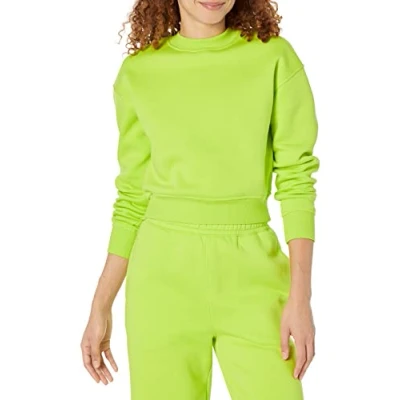 Amazon Essentials Women's Cropped Drop Shoulder Sweatshirt (Available in Plus Size), Lime Green, XXL