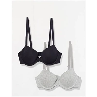 Amazon Essentials Women's Demi Cup Cotton Bra, Pack of 2, Grey Heather/Navy, 38A