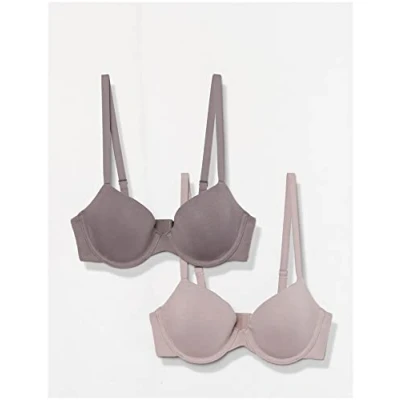 Amazon Essentials Women's Demi Cup Cotton Bra, Pack of 2, Grey/Mauve, 38A