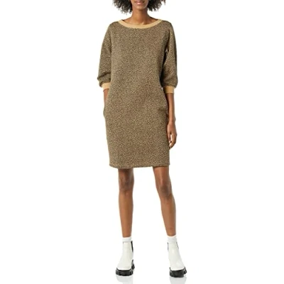 Amazon Essentials Women's Fleece Blouson Sleeve Boatneck Sweatshirt Dress (Available in Plus Size), Camel Cheetah, L