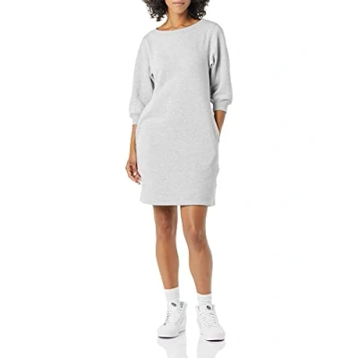 Amazon Essentials Women's Fleece Blouson Sleeve Crew Neck Sweatshirt Dress (Available in Plus Size), Grey Heather, L