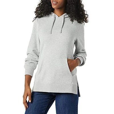 Amazon Essentials Women's Fleece Hooded Tunic Sweatshirt, Grey Heather, XS