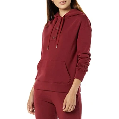 Amazon Essentials Women's Fleece Long Sleeved Henley Hoodie (Available in Plus Size) (Previously Aware), Dark Red, L