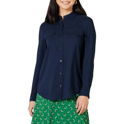 Amazon Essentials Women's Georgette Long Sleeved Relaxed fit Pockets Shirt, Navy, XS