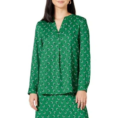 Amazon Essentials Women's Georgette Long Sleeved Relaxed fit Popover Blouse, Green Floral, L