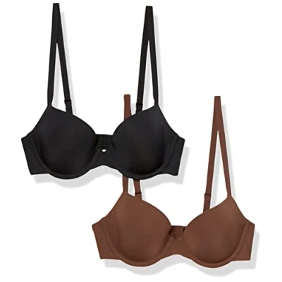 Amazon Essentials Women's Half Cup Microfibre Bra with Adjustable Straps, Pack of 2, Deep Brown, 34B