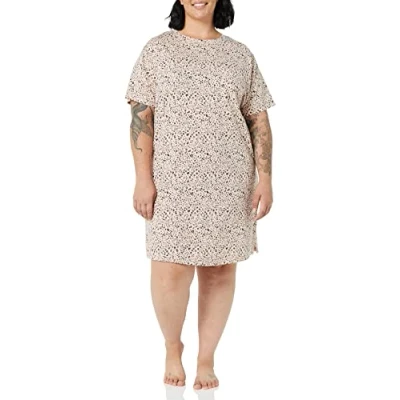 Amazon Essentials Women's Knit Jersey Sleep Tee Nightdress, Ivory Leopard, S
