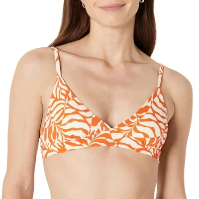 Amazon Essentials Women's Light Support Classic Bikini Swimsuit Top, Rust Orange Abstract Palms, 20