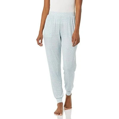 Amazon Essentials Women's Lightweight Knit Jersey Pyjama Bottoms, Jogger Lounge Sleep Wear with Pockets, Light Blue Rose Leopard, S