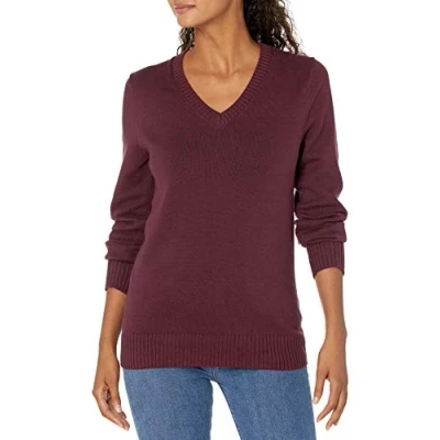 Amazon Essentials Women's Lightweight Long Sleeve V Neck Jumper, 100% Cotton, Burgundy, S