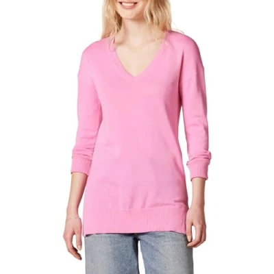 Amazon Essentials Women's Lightweight Long Sleeved V Neck Tunic Sweater (Available in Plus Size), Pink, L