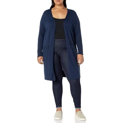 Amazon Essentials Women's Lightweight Longer Length Cardigan Jumper (Available in Plus Size), Navy, S