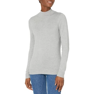 Amazon Essentials Women's Lightweight Mockneck Jumper (Available in Plus Size), Light Grey Heather, XS