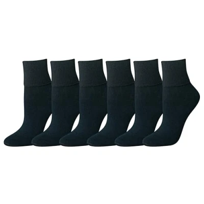 Amazon Essentials Women's Lightweight Turn Cuff Socks, 6 Pairs, Black, 3 7