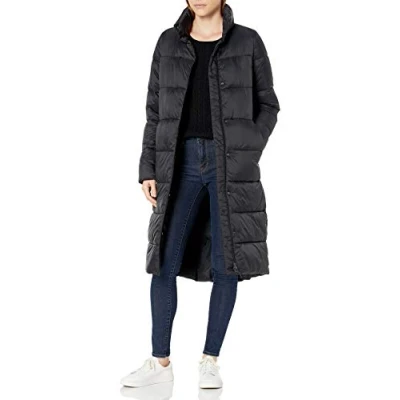 Amazon Essentials Women's Lightweight Water Resistant Long Cocoon Puffer Winter Coat, Black, L
