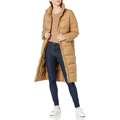 Amazon Essentials Women's Lightweight Water Resistant Long Cocoon Puffer Winter Coat, Camel, L
