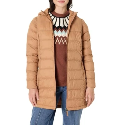 Amazon Essentials Women's Lightweight Water Resistant Packable Hooded Puffer Coat (Available in Plus Size), Light Brown, S