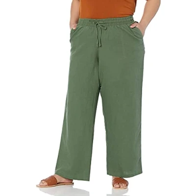 Amazon Essentials Women's Linen Blend Drawstring Relaxed Fit Wide Leg Pant (Available in Plus Size), Military Green, XXL