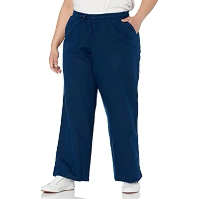 RELAXED FIT: Relaxed, comfortable fit through hip and thigh. Mid rise, sits below the natural waist. COTTON LINEN BLEND: Smooth and lightweight cotton linen blend features a beautiful drape and offers perfect breathability for those warm summer months. EVERYDAY SUMMER PANT: This chic, relaxed pull-on pant is perfect for all-day comfort and easy styling. Pair it back with a classic t-shirt or tank for the ultimate stay cool look. DETAILS: Features a full-length, wide leg, and easy pull-on elastic waistband with drawcord. Front angled pockets and back patch pockets. INSEAM: 30 1/2" with a 11 5/8" leg opening on US size 2X.
