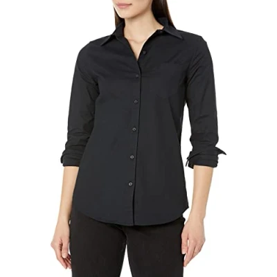 Amazon Essentials Women's Long Sleeve Button Down Stretch Oxford Shirt (Available in Plus Size), Black, XS