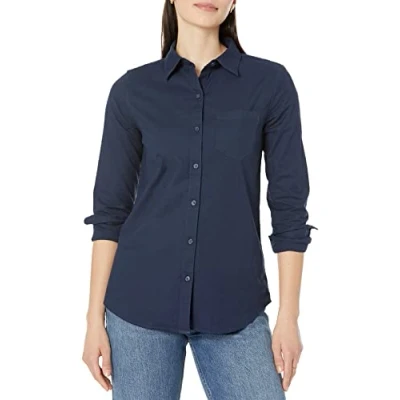 Amazon Essentials Women's Long Sleeve Button Down Stretch Oxford Shirt (Available in Plus Size), Navy, S