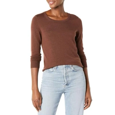 Amazon Essentials Women's Long Sleeve Lightweight Crewneck Jumper (Available in Plus Size), Dark Chestnut Brown, S
