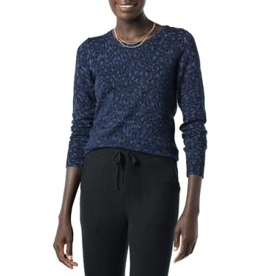 Amazon Essentials Women's Long Sleeve Lightweight Crewneck Jumper (Available in Plus Size), Navy Cheetah, S