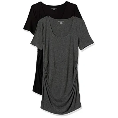 Amazon Essentials Women's Maternity Short Sleeve Rouched Scoopneck T Shirt, Pack of 2, Charcoal Heather/Black, L