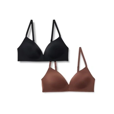 Amazon Essentials Women's Microfibre Lined Plunge Bralette, Pack of 2, Black/Rich Hazel, 38A
