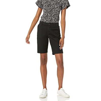 Amazon Essentials Women's Mid Rise Slim Fit 10" Inseam Khaki Bermuda Short, Black, 18
