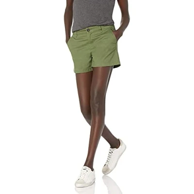 Amazon Essentials Women's Mid Rise Slim Fit 3.5 Inch Inseam Khaki Short, Olive, 10