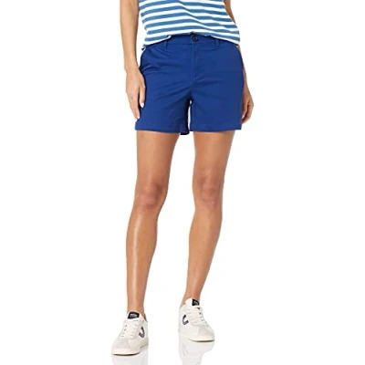 Amazon Essentials Women's Mid Rise Slim Fit 5 Inch Inseam Khaki Short (Available in Straight and Curvy Fits), Blue, 6