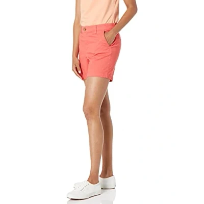 Amazon Essentials Women's Mid Rise Slim Fit 5 Inch Inseam Khaki Short (Available in Straight and Curvy Fits), Coral Pink, 22